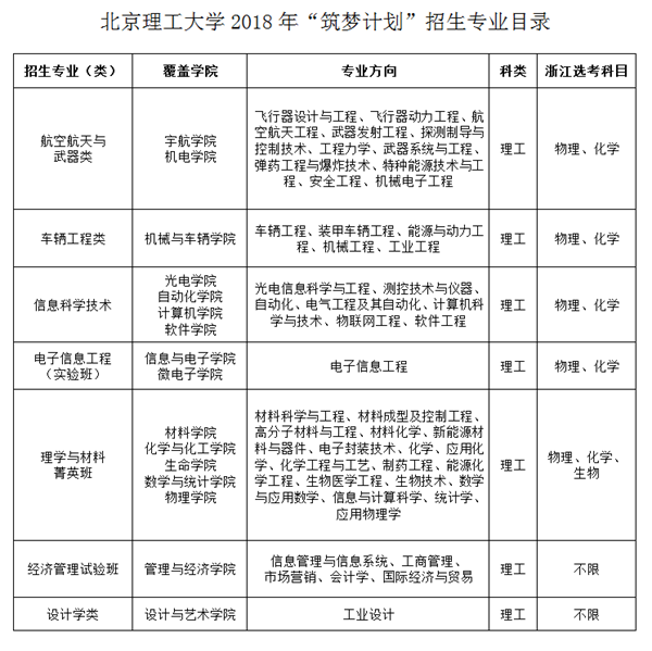认定考生按生源地省级招办的统一安排和我校要求填报志愿,须服从专业调剂,方享有我校“筑梦计划”优惠政策;浙江省认定考生所填报专业须符合我校高考选考科目要求。我校将参考其所在省份普通一批专业录取情况安排专业(北京理工大学2018年“筑梦计划”招生专业见附件)。
